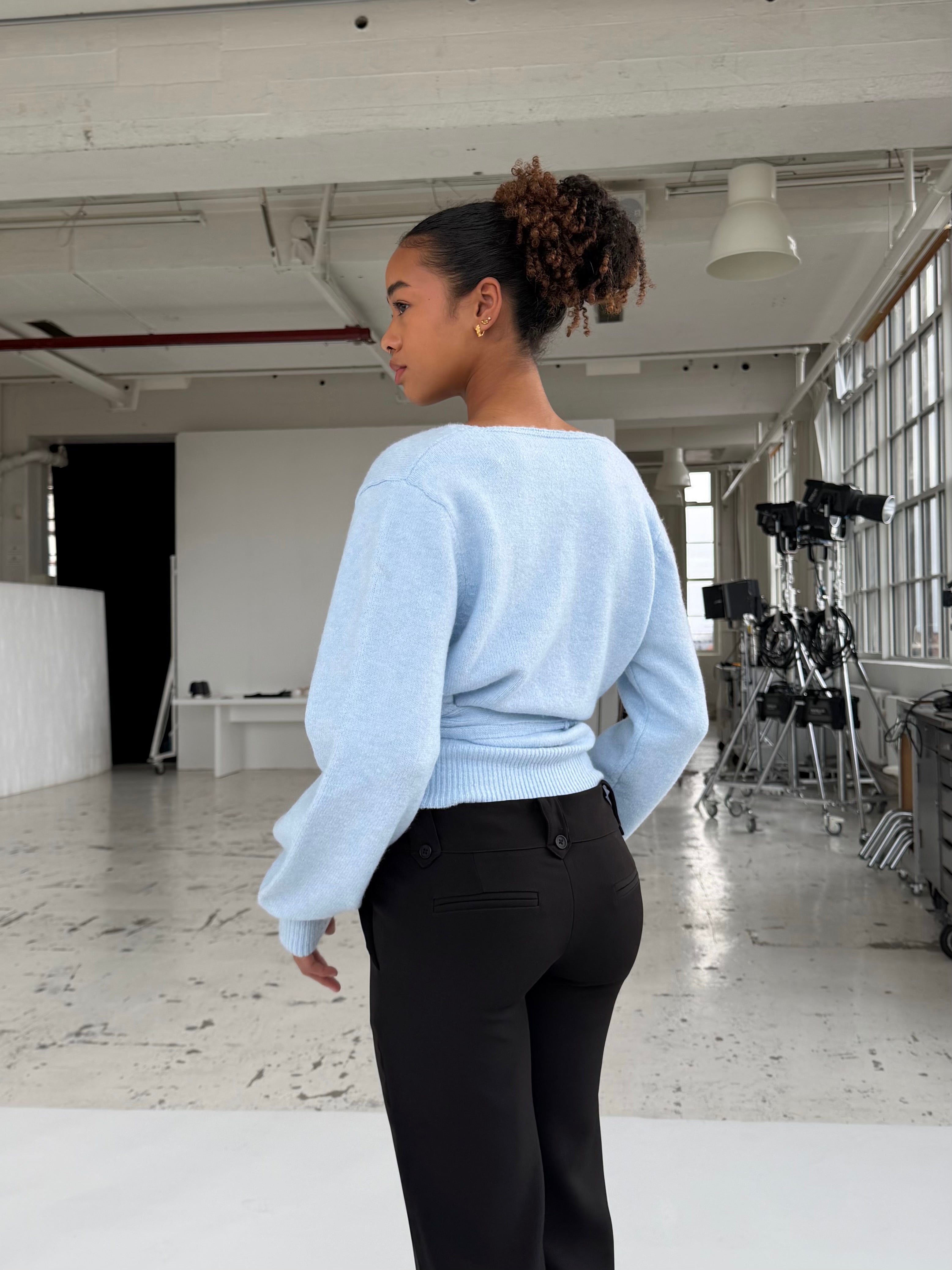 Wool blend wrap cardigan - Light grey/brown (pre-order)