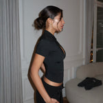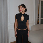 Beautiful basic top in the softest material with a cut-out and button closure. The top has plenty of stretch and fits beautifully to the body.
