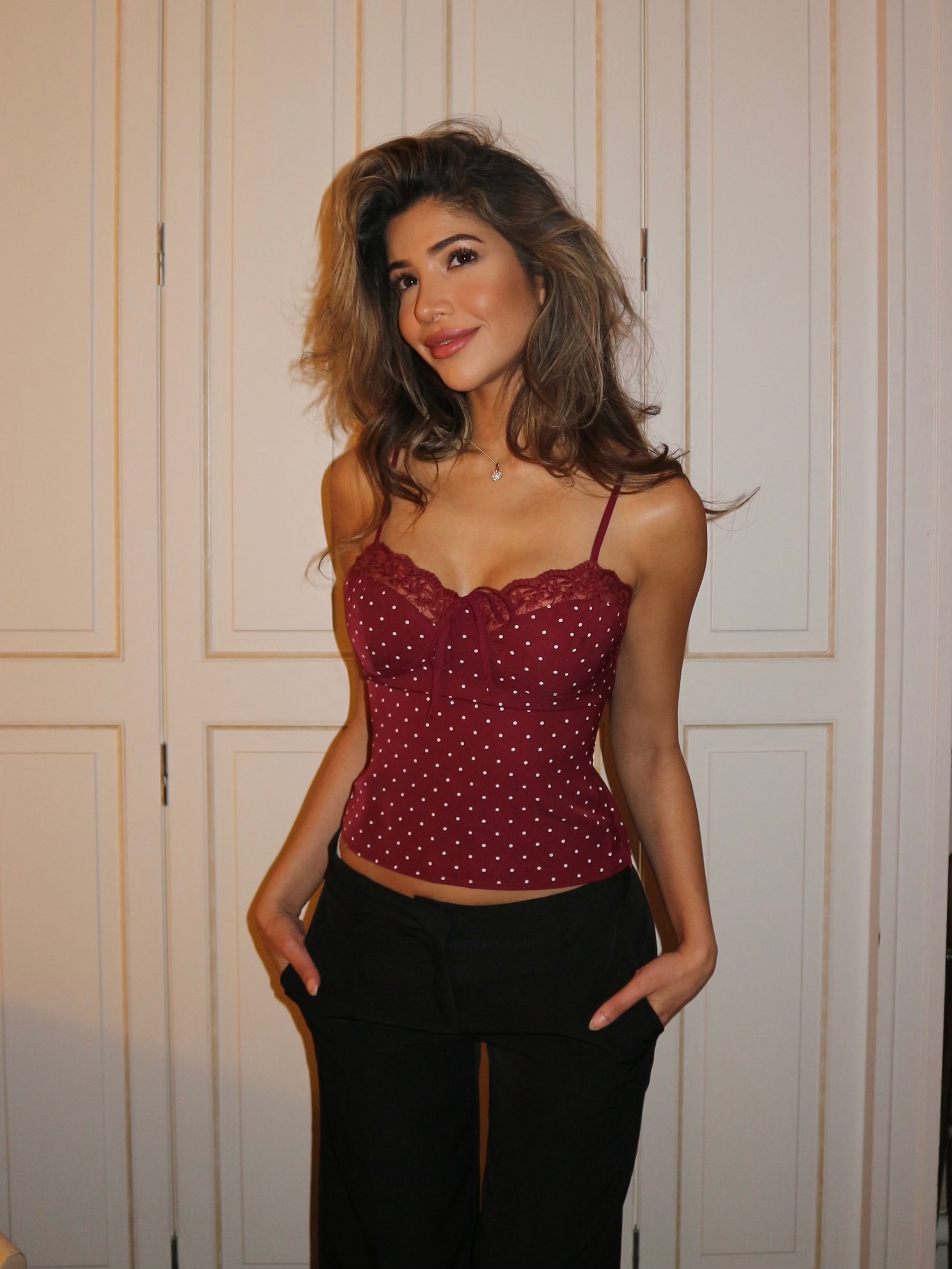 Dot lace top - dark red