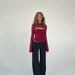 Beautiful lace top in material with a lot of stretch, which fits the body nicely. The top has long sleeves with lace at the top and along the entire back.