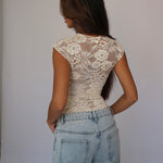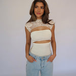 Beautiful lace top in material with a lot of stretch, which fits the body nicely. The top has lace on top and the entire back.