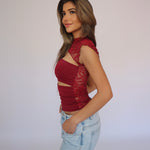 Beautiful lace top in material with a lot of stretch, which fits the body nicely. The top has lace on top and the entire back.