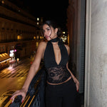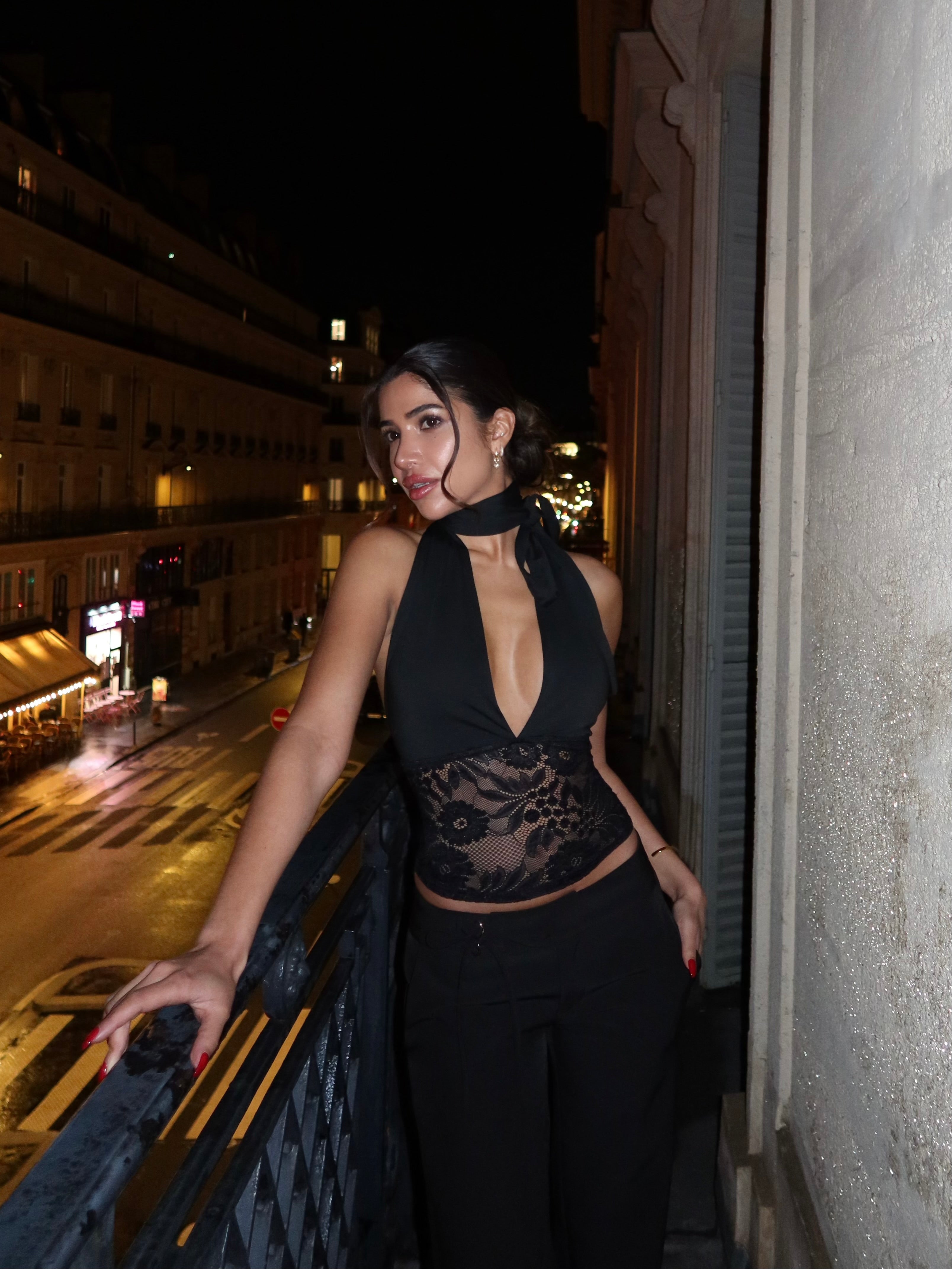 The top can be tied in multiple ways, allowing you to adjust the look to your preference. You tie the top yourself, meaning you can also decide how low-cut you want it to be.