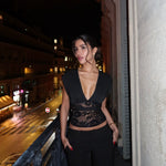 A beautiful multi lace top that fits tightly and flatteringly on the body.