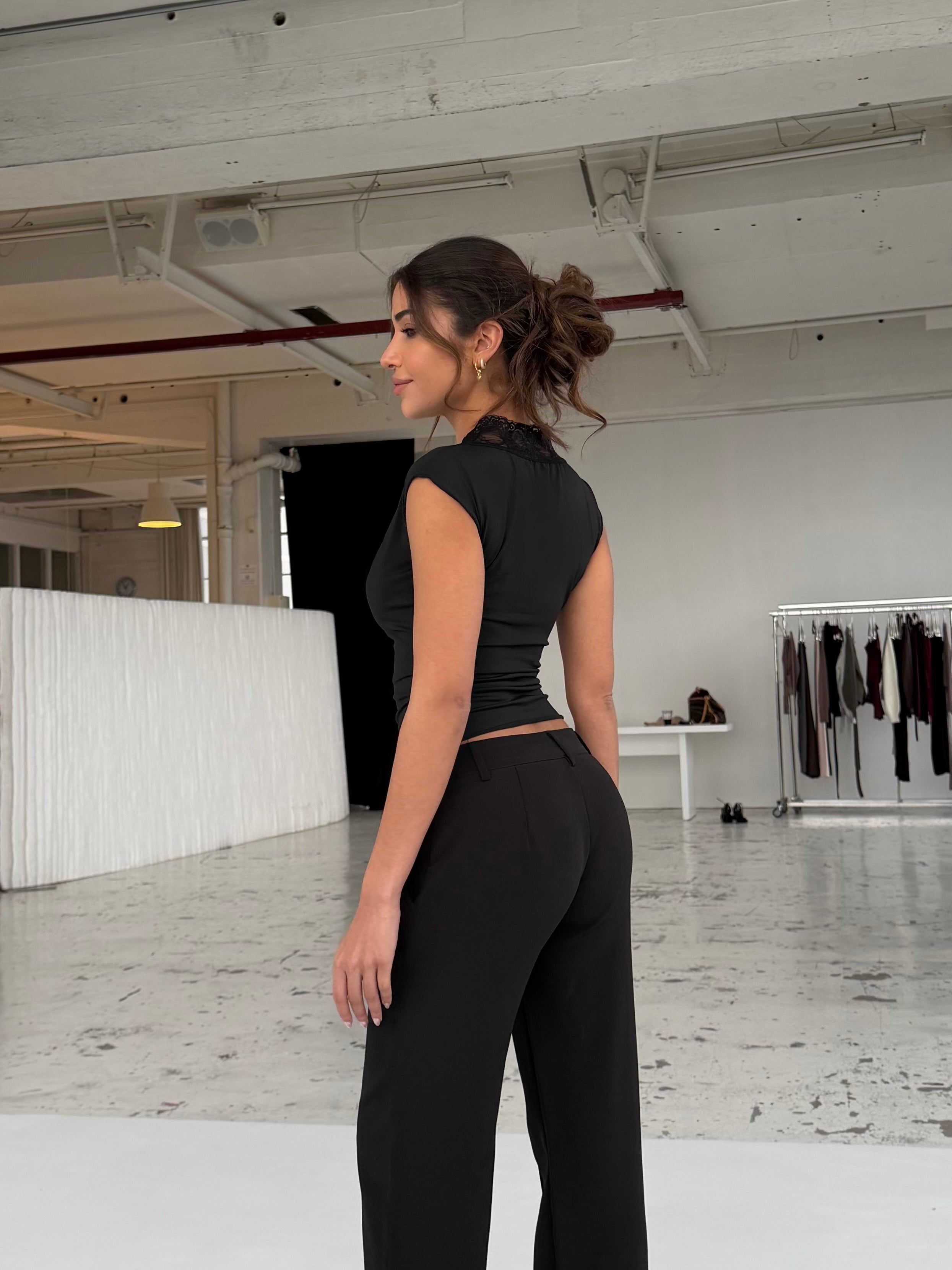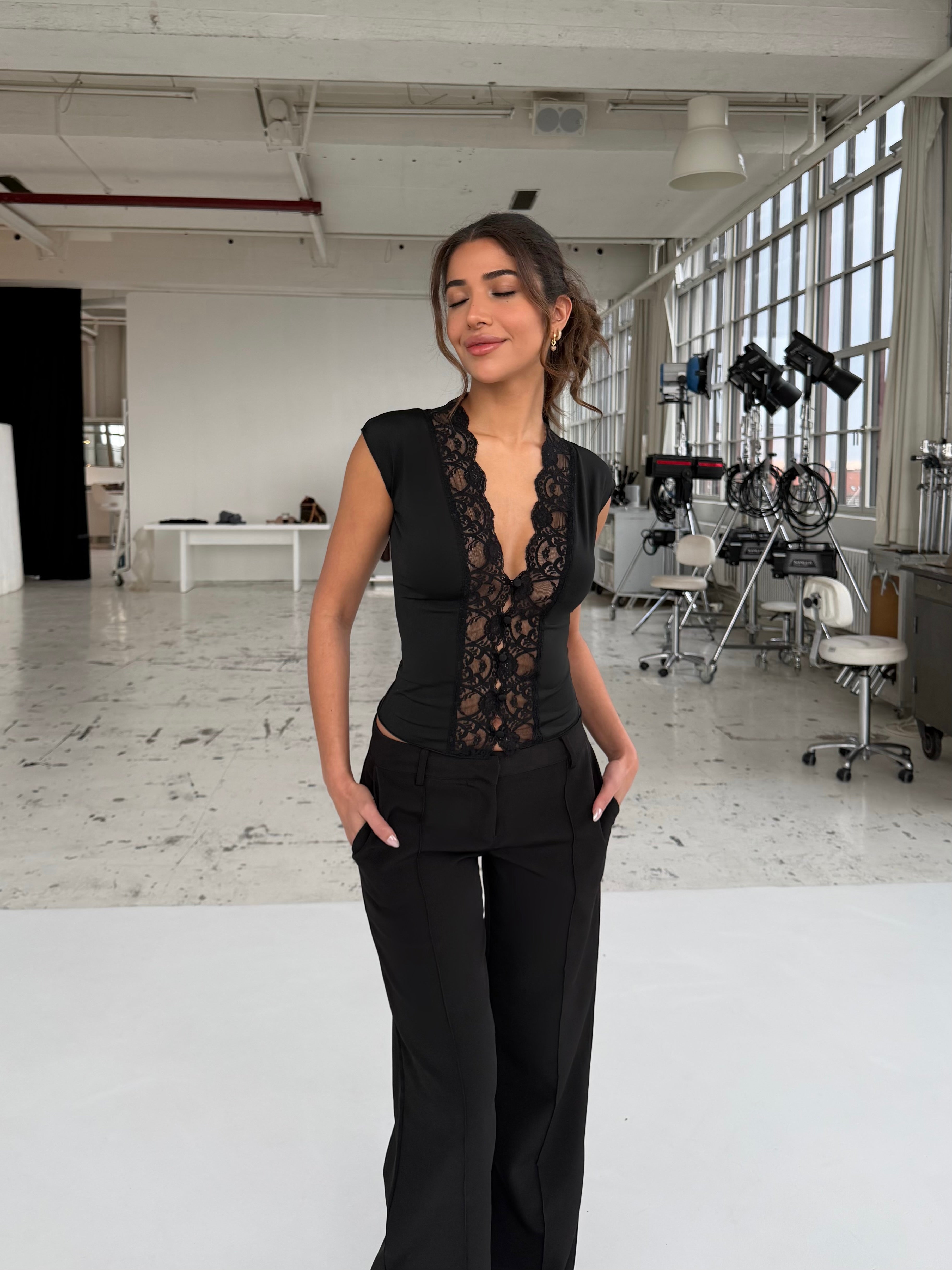 Beautiful basic lace top with buttons and long sleeves. The top is made of a soft material that is very comfortable to wear. The top has a lace edge.