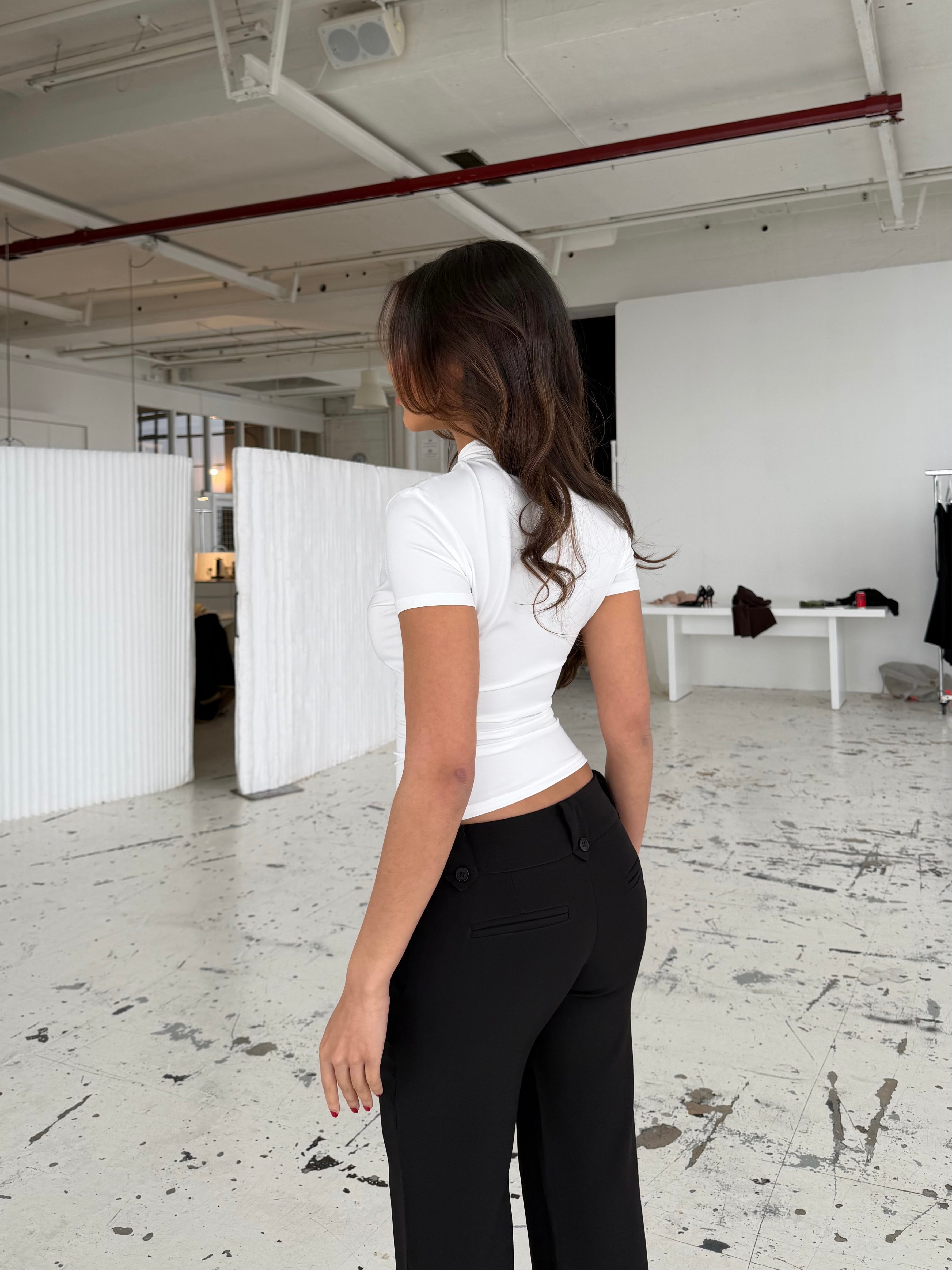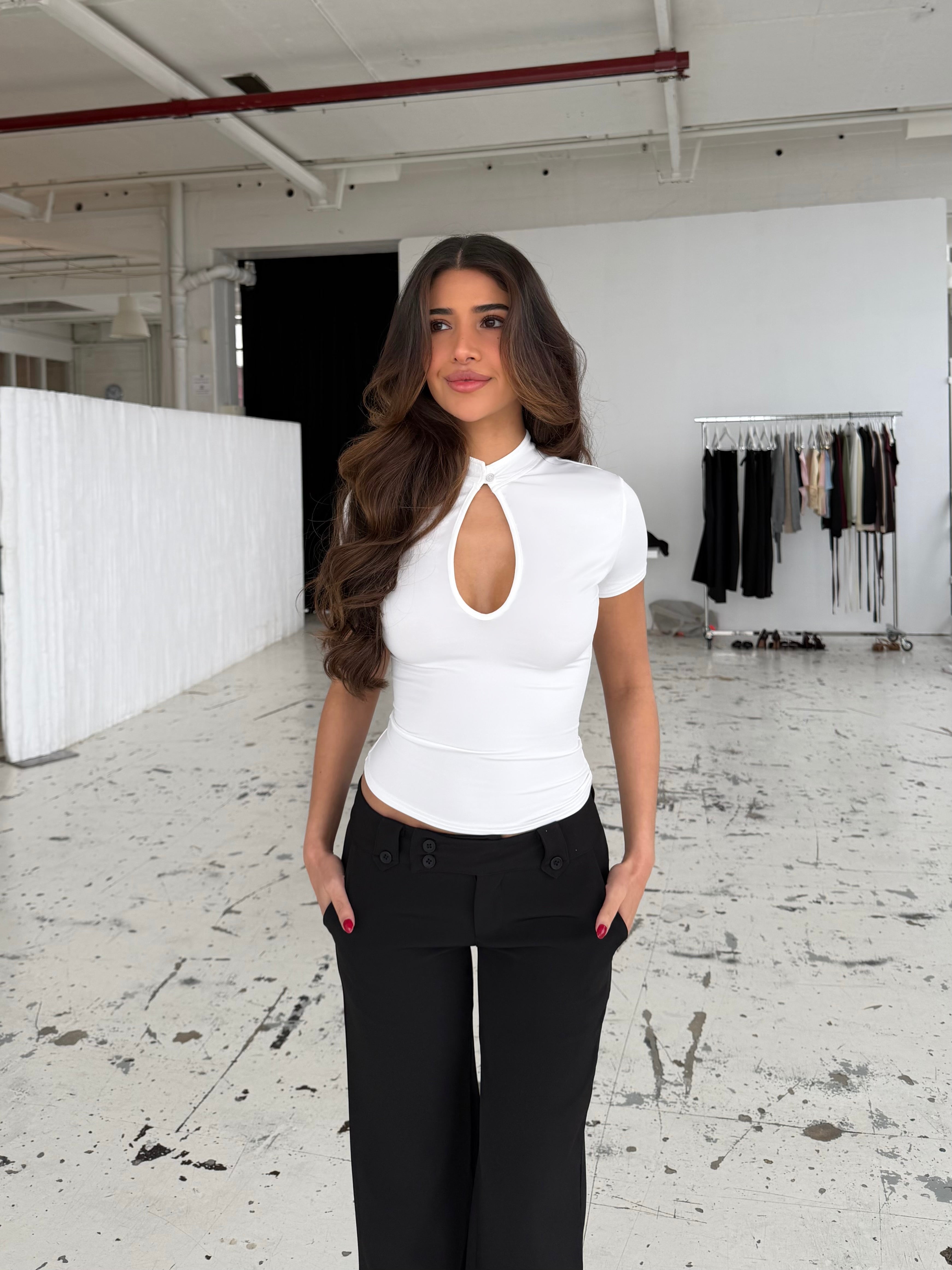 Schönes Basic-Top aus dem weichsten Material mit Cut-out und Knopfverschluss. Das Top hat viel Stretch und sitzt schön am Körper.