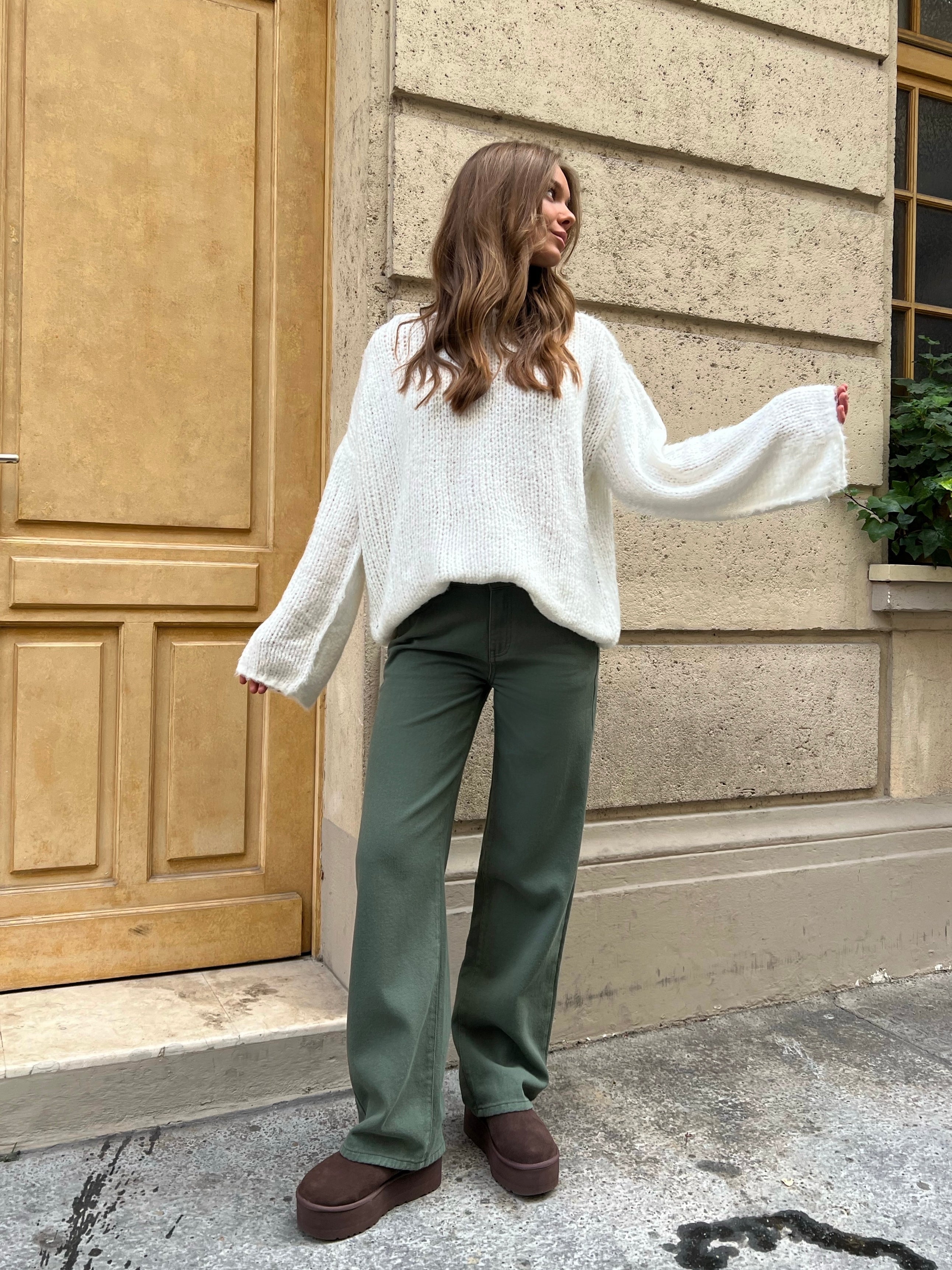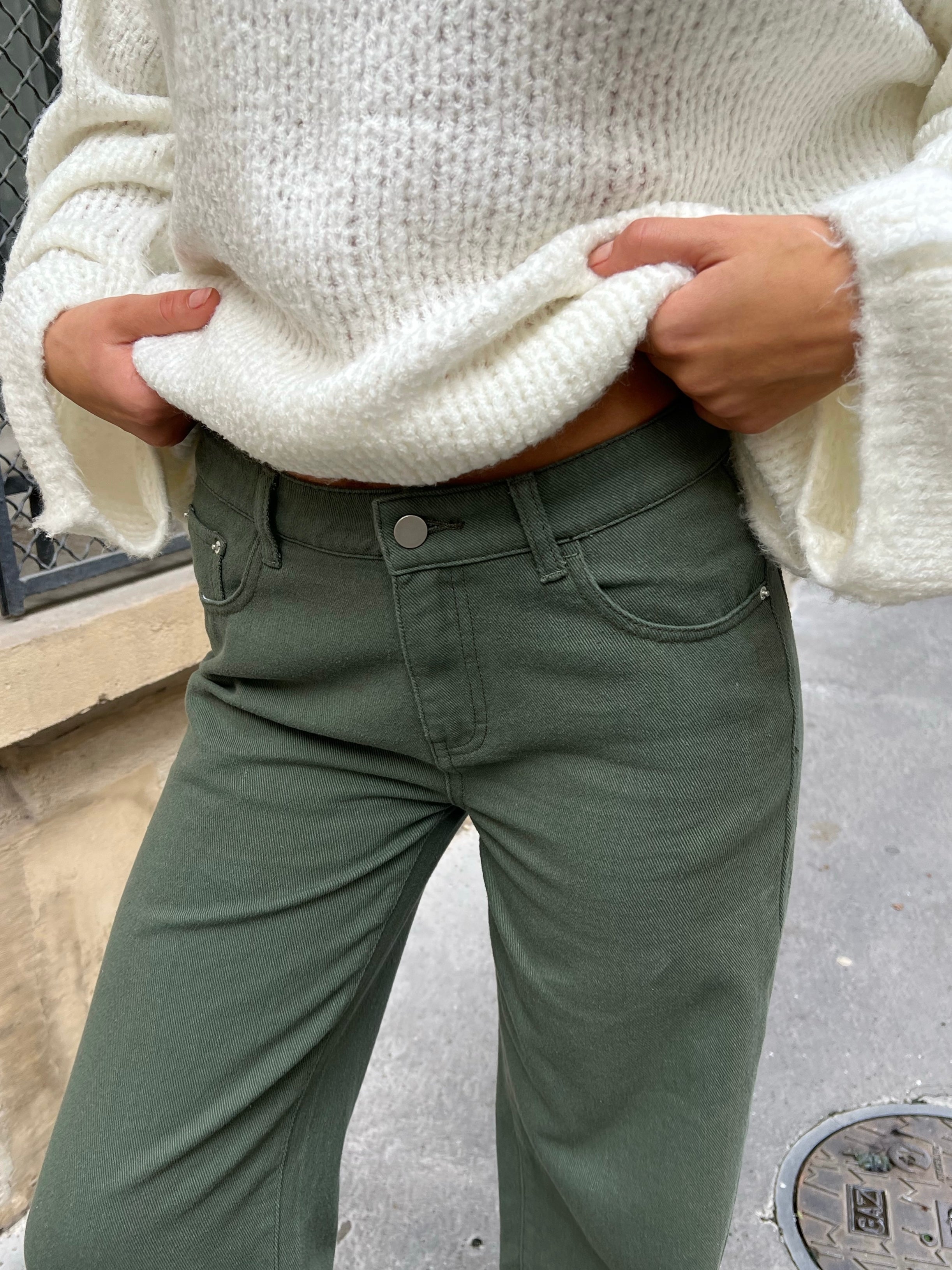 Army Green Jeans in der kühlen lockeren Passform. Die Hosen sind ziemlich niedrig tailliert.