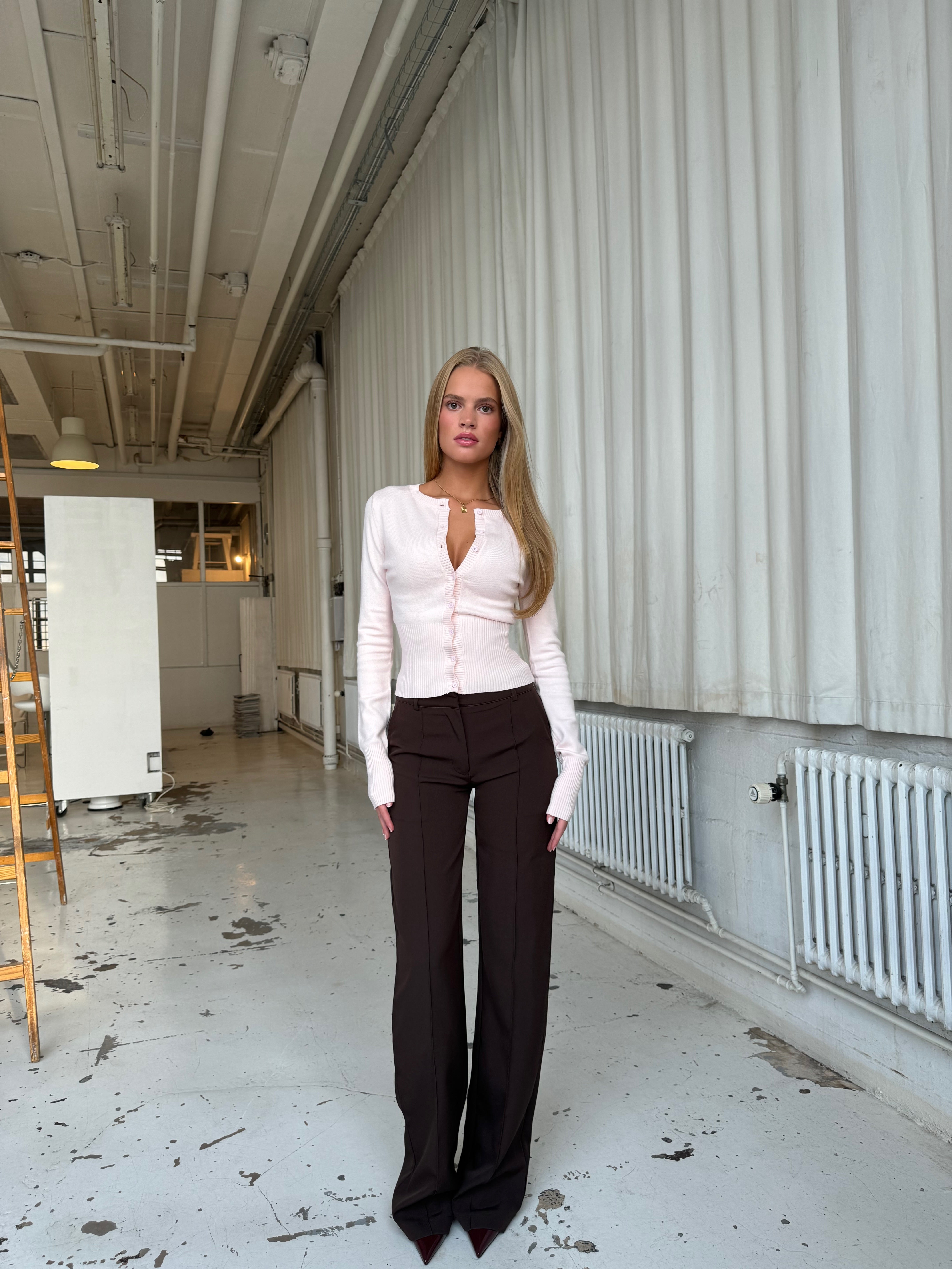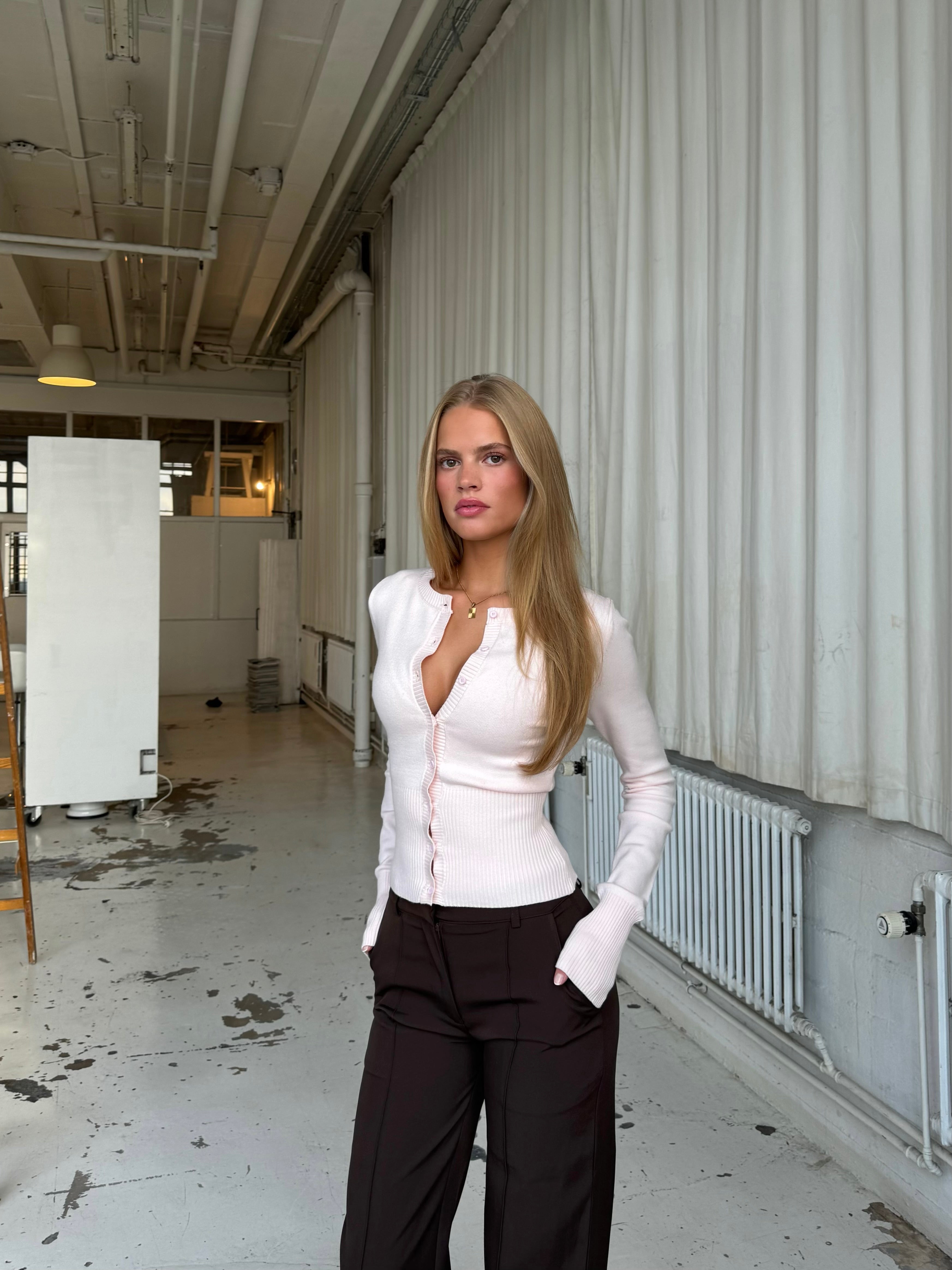 Strickjacke im weichsten Material aus Wollmischung. Es ist mit Knöpfen und sitzt schön zum Körper.