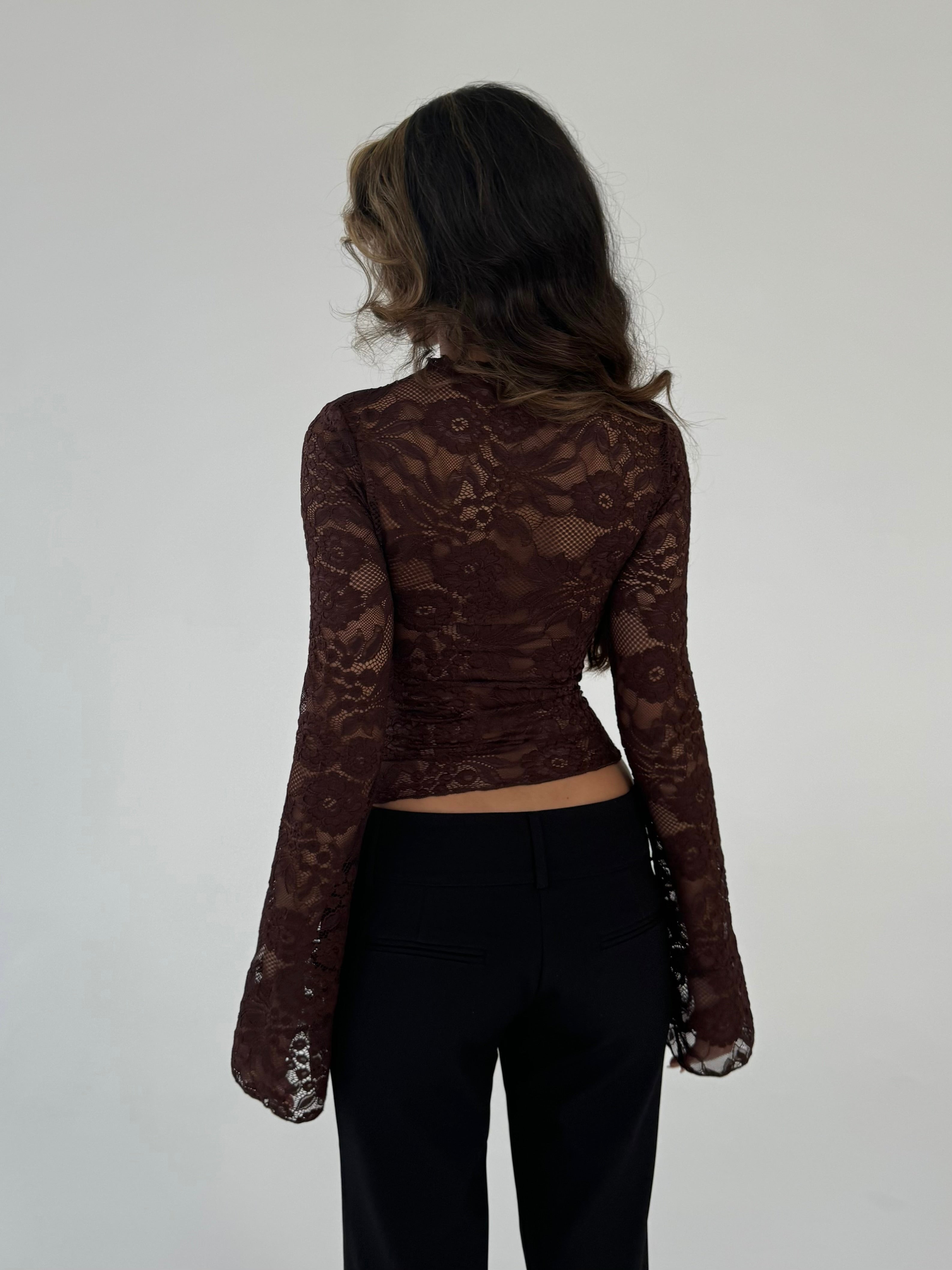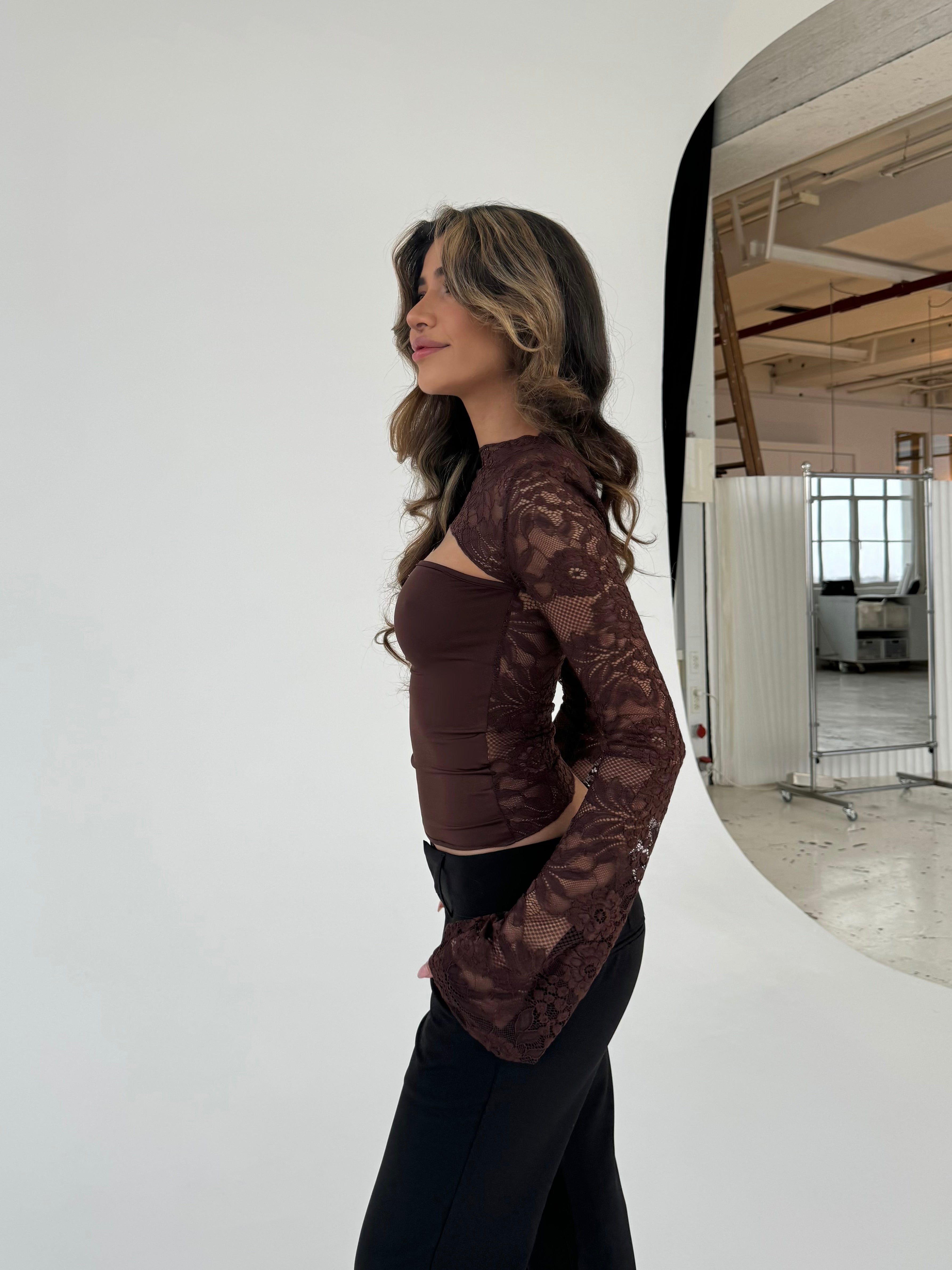 Lara Lace Long Sleeve Top - Dunkelbraun