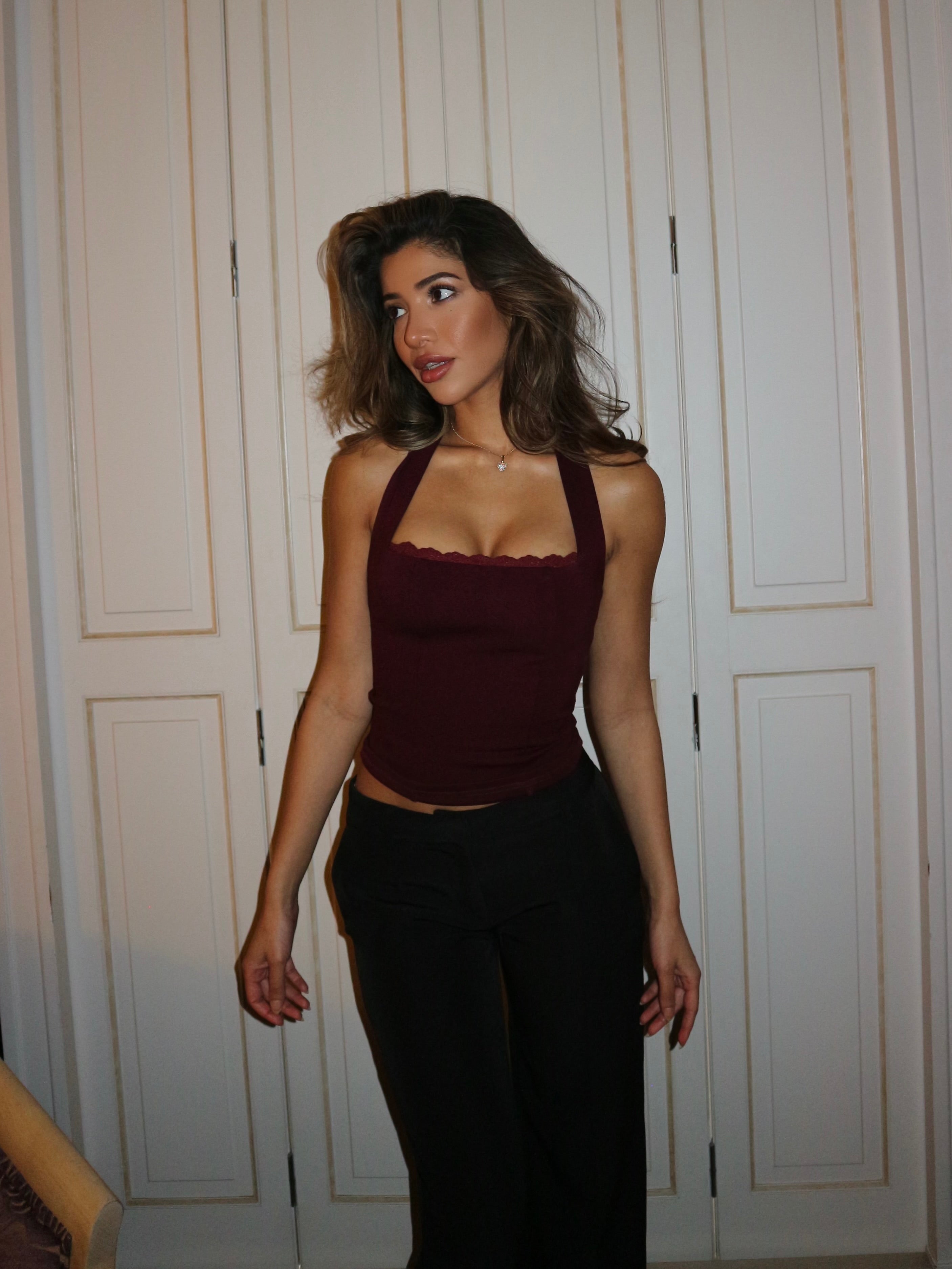 Schöne Korsett -Oberseite in Material mit sehr Dehnung, die gut zum Körper sitzt. Das Oberteil ist im Nacken gebunden und mit Haken im Rücken geschlossen.